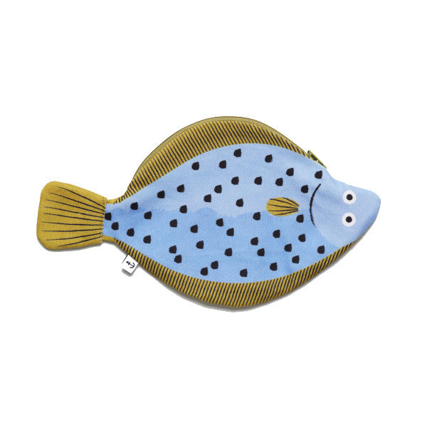 Les petites affaires dans le ventre du poisson ! Cette trousse en forme de poisson plat est faite 100% de coton. Dimension : 28 x 15 cm Fabriqué à Barcelone