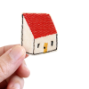 Joli patch maison en rouge avec une porte jaune en feutre et fil recyclé d'un dessin de Donnerstagsonntag. Le patch à repasser est joliment doux et flexible. Tu peux le repasser sur presque tous les tissus qui se repassent, seul le coton ciré ne fonctionne pas. taille HxL 4,0x 3,5cm brodé en Allemagne sur du feutre robuste en fil recyclé pour repasser et raccommoder facilement les vêtements pas besoin de coudre ! lavable à 40° sur l'envers vegan Marque allemande