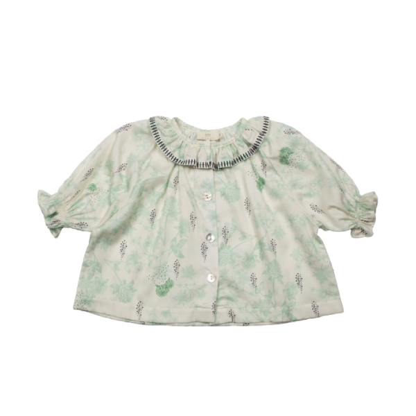 Ravissante blouse en satin avec des jolis imprimés végétaux, pour se promener avec élégance. Le col volant est souligné par des petites broderies. Fabriqué à partir de coton 100% biologique. La composition du tissu est non seulement douce au toucher mais aussi écologique, ce qui en fait un excellent choix pour les parents consciencieux qui veulent habiller leurs enfants avec style, sans compromettre la qualité ou l’éthique. Fabriqué au Portugal