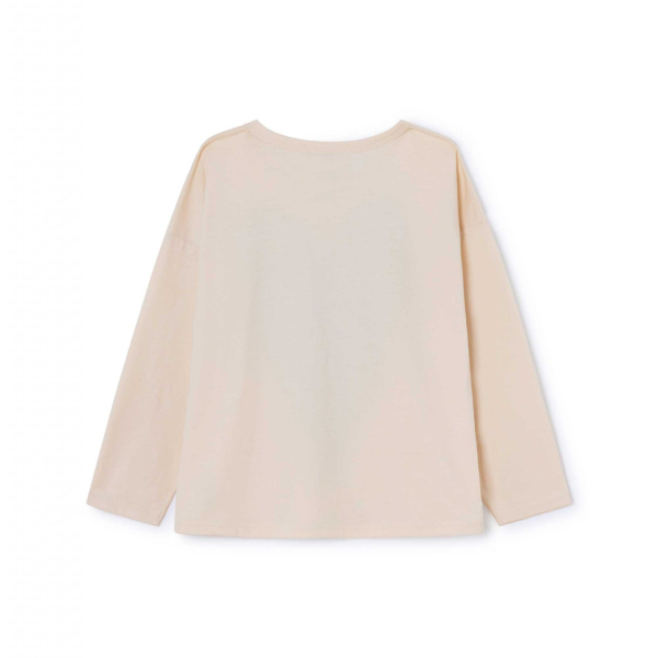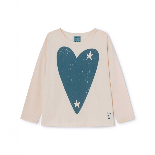 T-shirt en jersey régulier 100 % coton biologique de couleur ivoire. Col rond et manches longues. Imprimé cœur sur le devant et petits détails brodés. Coupe ample. 100% coton bio Fabriqué en Espagne