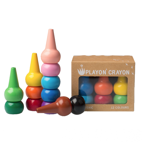 Boite en carton de crayons en cire, faciles à tenir pour les petites mains. Non toxique et lavable. A partir de 2 ans.